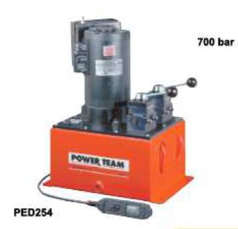 雙速泵,兩個閥具有相同的低壓和高壓流量。每個泵的流量和壓力互相獨立。每個泵的供油量在壓力7 bar時流量為4.8L/min. 700 bar時流量為0.4L/min.。配備 1.12 kW,220V,50Hz感應(yīng)馬達,3.1m線纜遙控器及19L鋼制油箱。可用于操作單作用或雙作用油缸。每一個泵含有兩個獨立的泵及兩個獨立的閥。這就允許一個泵來操作控制多個動作。兩個獨立泵均配有一個外置可調(diào)溢流閥。不推薦用于頻繁的啟動及停止。